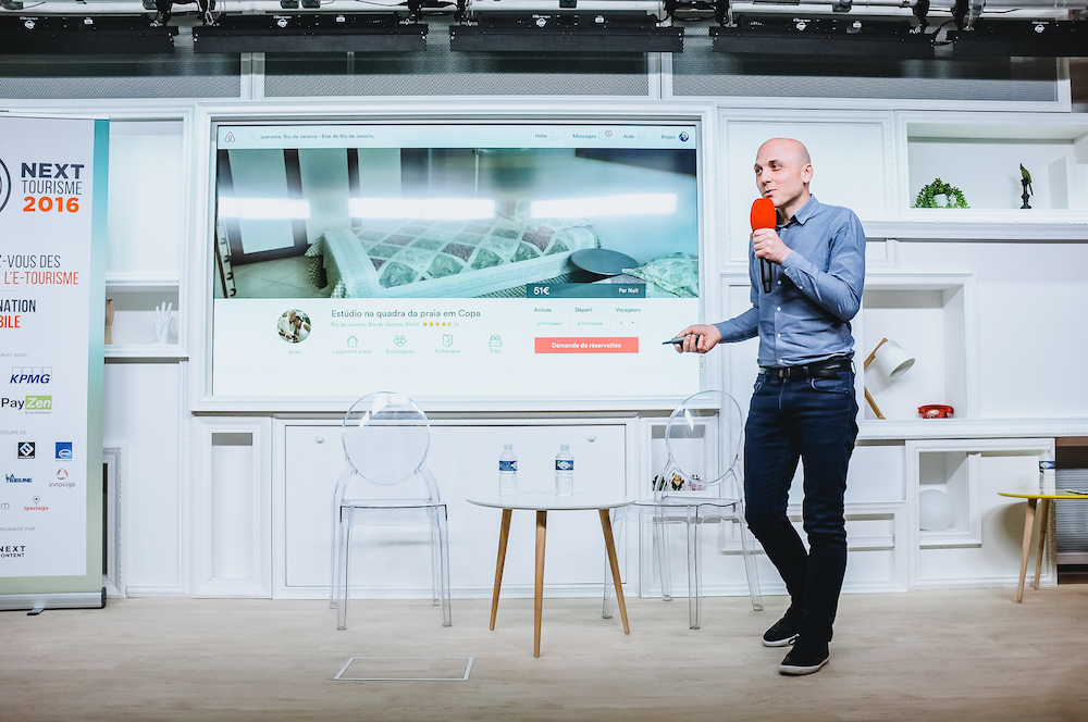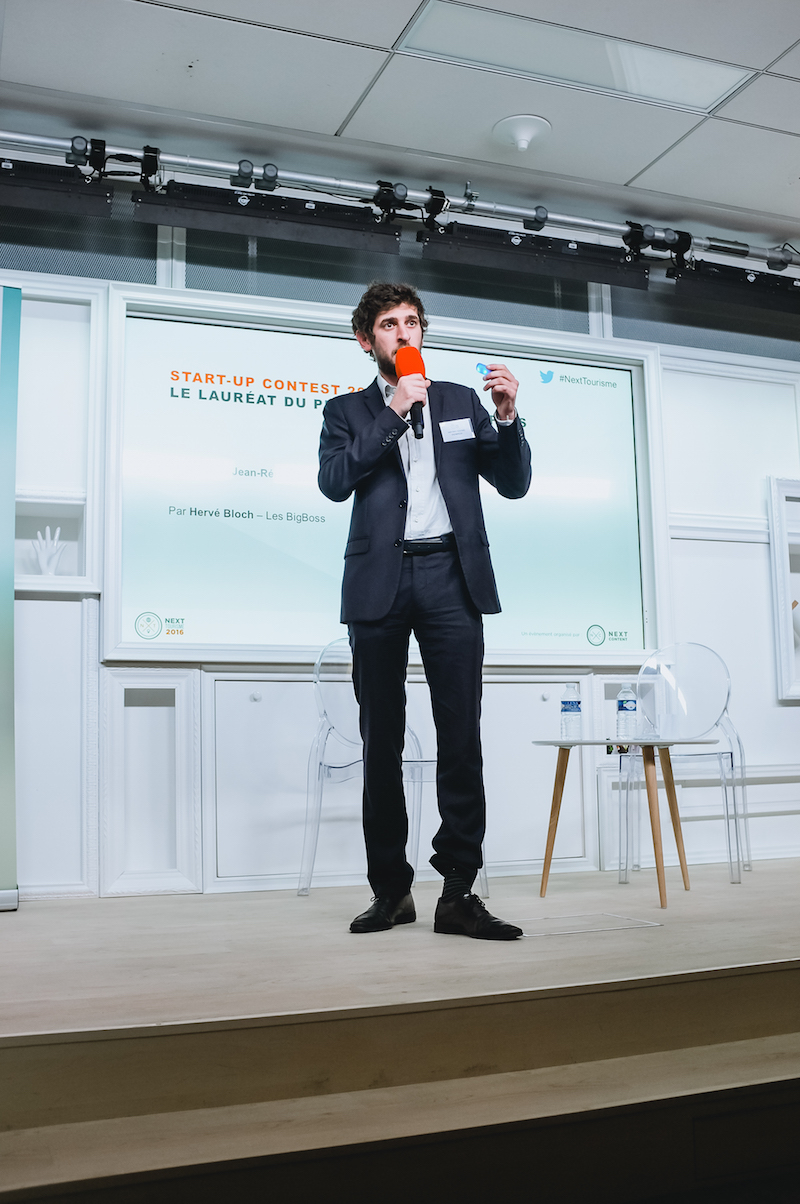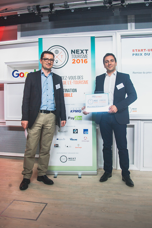Stéphane Loire (Next Content) remet le prix du public à Valéry Bernard (MyLittleAdventure) – Next Tourisme 2016