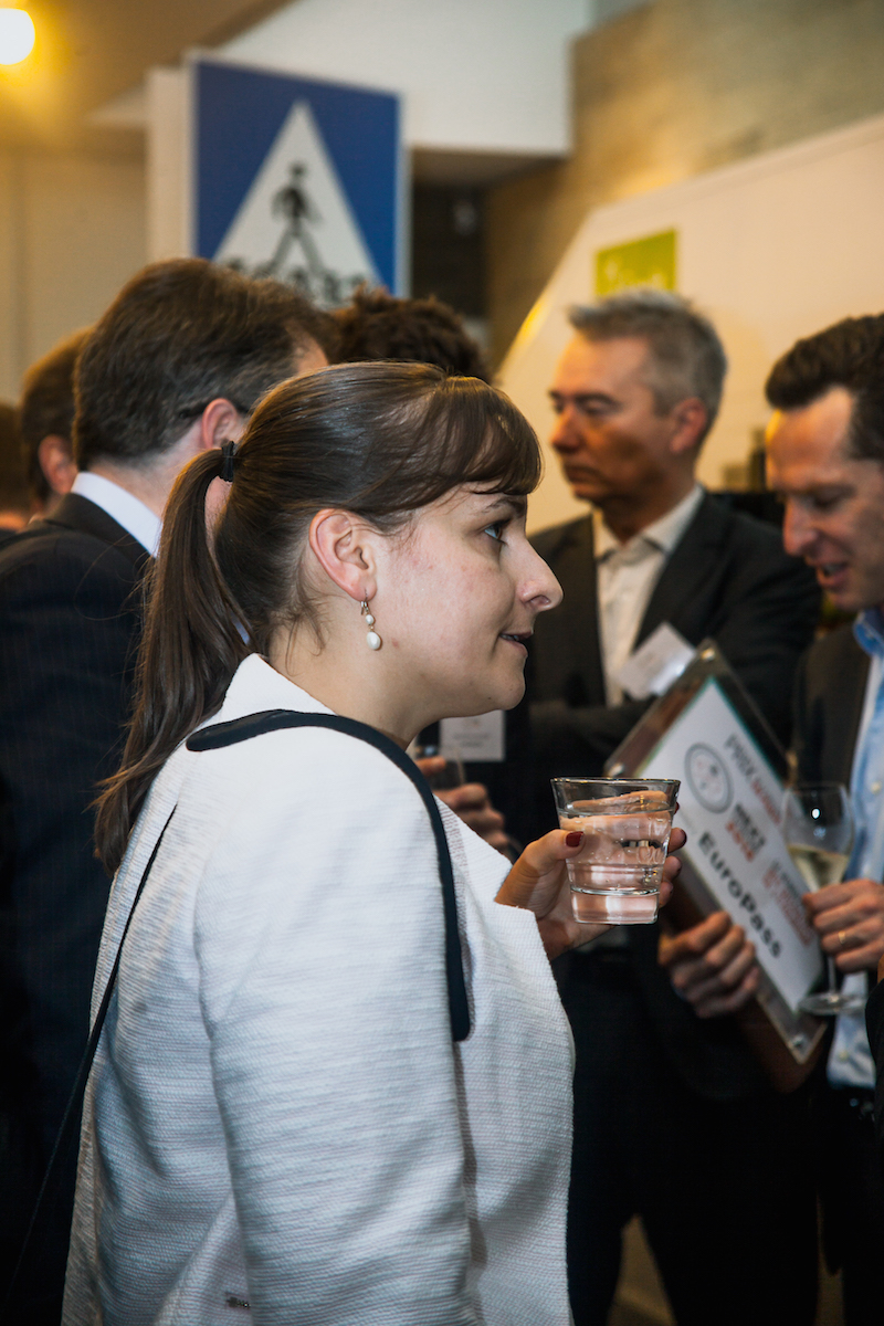 Laurence Rousseau (L’Echo Touristique) remet le prix de la start-up en phase de lancement à Guillaume de Roquefeuil (EuroPass) – Next Tourisme 2016