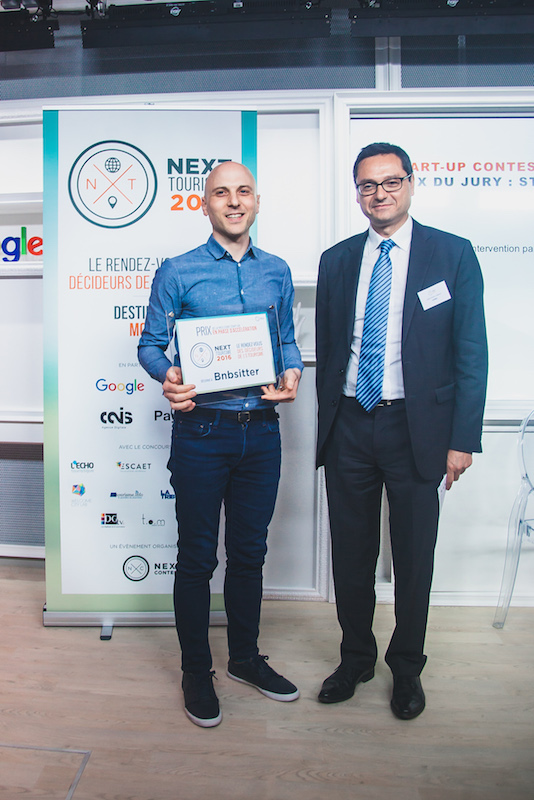 Jean-Pierre Valensi (KPMG) remet le prix de la start-up en phase d’accélération à Piero Cipriano (Bnbsitter) – Next Tourisme 2016